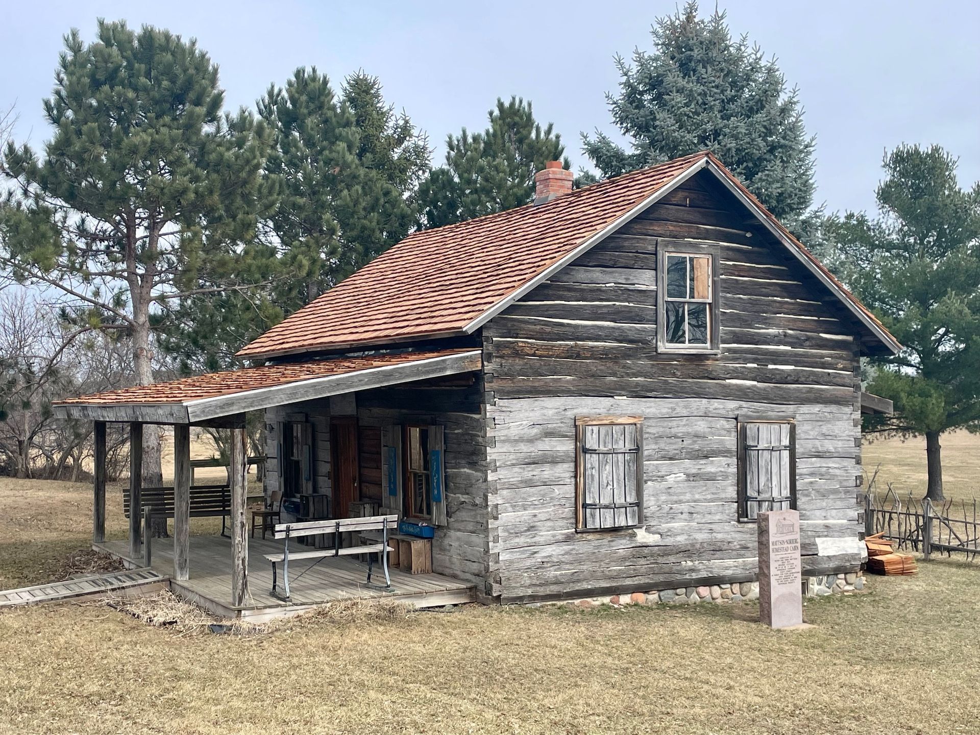 Logs were cut for a log cabin and in 1872 they moved into the three room cabin consisting of a large living room and two bedrooms. Some years after, they added a kitchen, and still later a pantry and a back bedroom.
